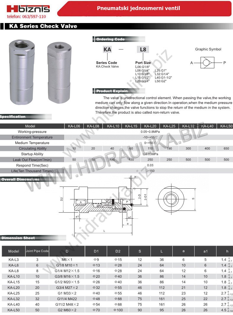 Jednosmerni pneumatski ventil se koristi kada je potrebno da se obezbedi da se vazduh ne vraća iz izvršnog elementa.